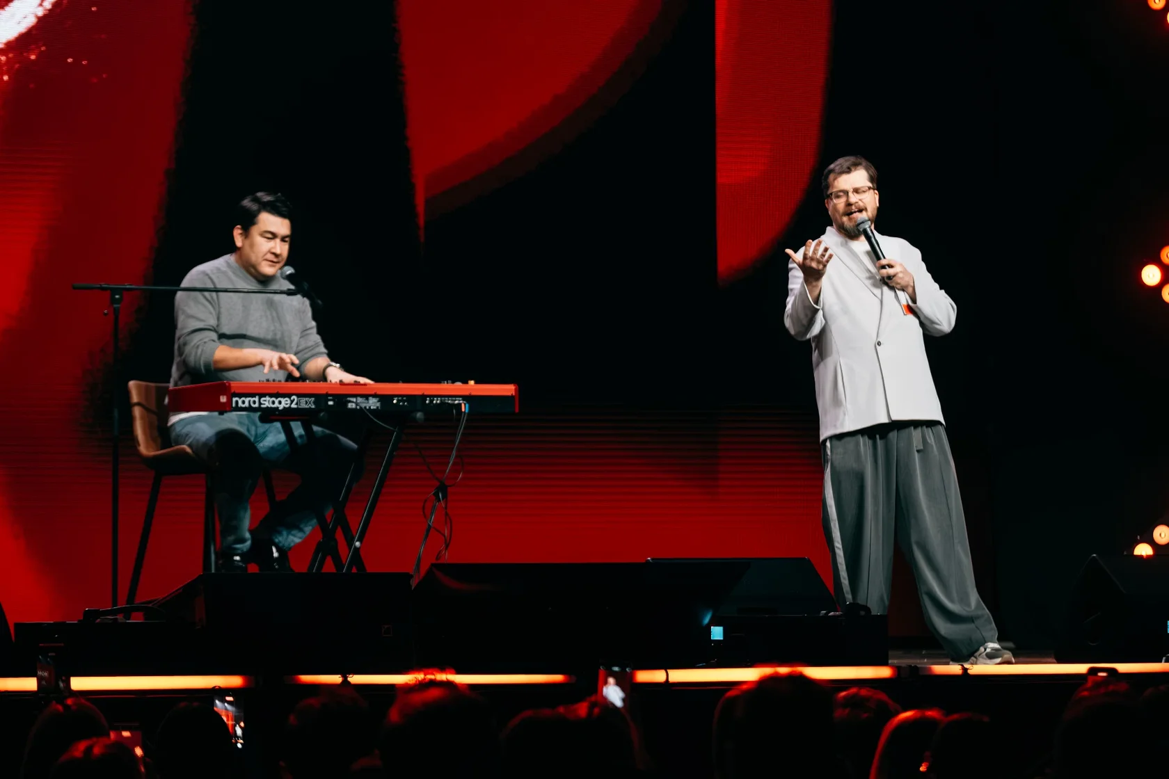 Поздравить именинника собрались близкие коллеги по цеху: от Тимура Батрутдинова и Марины Кравец до Азамата Мусагалиева и Дениса Дорохова. С нами Гарик тоже давно на одной волне — мы уже выступали на шоу «Кстати», а сам комик стоял за дирижерским пультом Оркестра Империал и управлял нашими музыкантами.