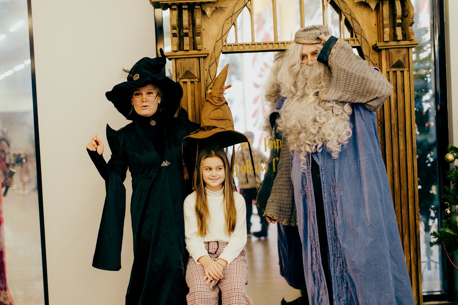 Погружение в сказку начиналось с порога. У фотозон гостей встречали актеры в образах Дамблдора, Макгонагалл и Беллатрисы, а рядом работали лавки с атрибутикой.