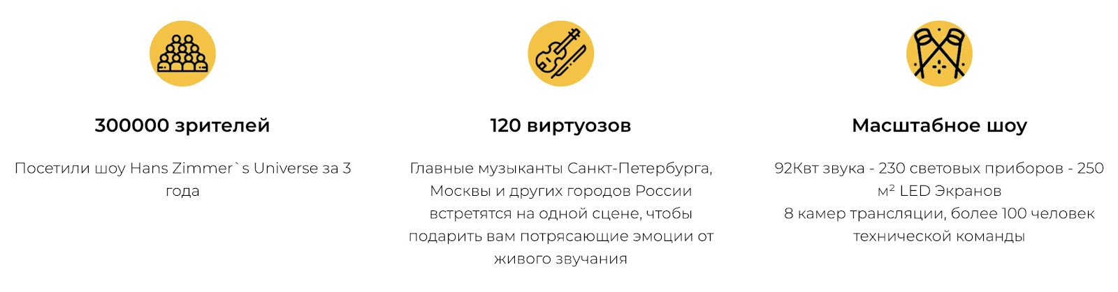 Одно из главных шоу оркестра — Hans Zimmer’s Universe. Это театрализованный концерт, в котором звучат саундтреки из фильмов, знакомые каждому: «Интерстеллар», «Гладиатор», «Начало», «Дюна», «Король Лев», «Пираты Карибского моря», «Шерлок Холмс». И все это — в живом исполнении, с невероятной визуальной составляющей и звуком, который проникает под кожу.