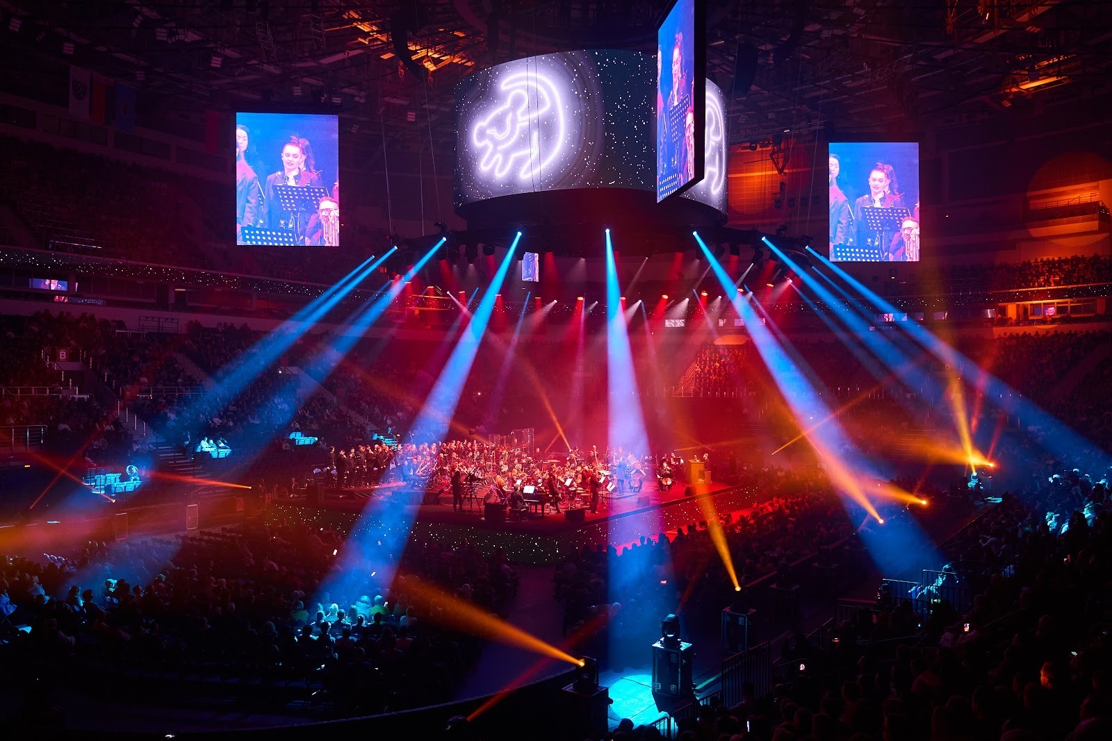 За этим стоят факты: 92 кВт звука, 230 световых приборов, 250 м² LED-экранов, 8 камер и более 100 техников за кулисами. Такой сетап дает равномерное покрытие зала и стабильную синхронизацию света, видео и звука — эффект присутствия достигается инженерией.